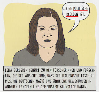 Lena Berggren, die Geschichtsdozentin, die selbst als Figur im Comic auftaucht und die Dinge erklärt, ist der Ansicht, daß Faschismus eine politische Ideologie ist.