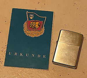 1980 habe ich wohl mal diese Urkunde bekommen, die nur etwas größer als eine Geldkarte und hier im Vergleich mit einem Feuerzeug zu sehen ist: