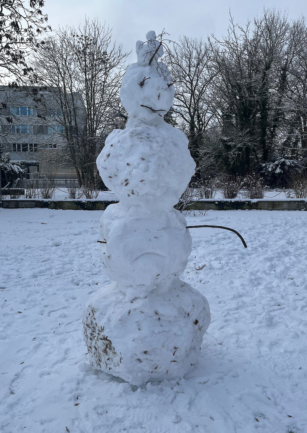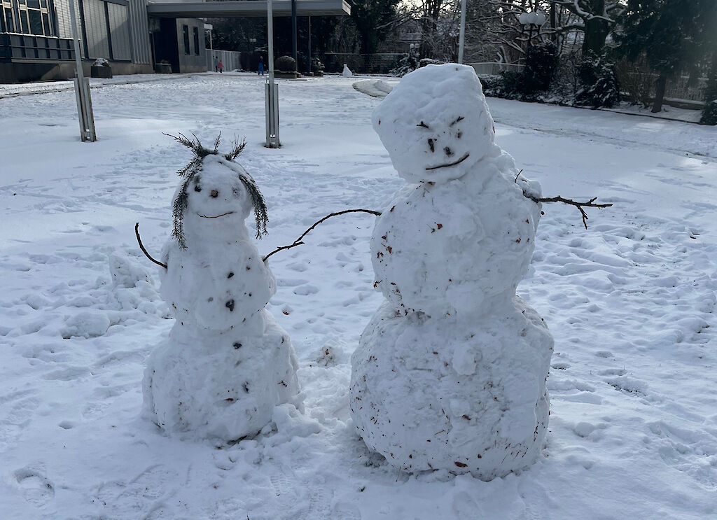 Ein Schneemannpärchen, das einst dahinschmilzen wird.